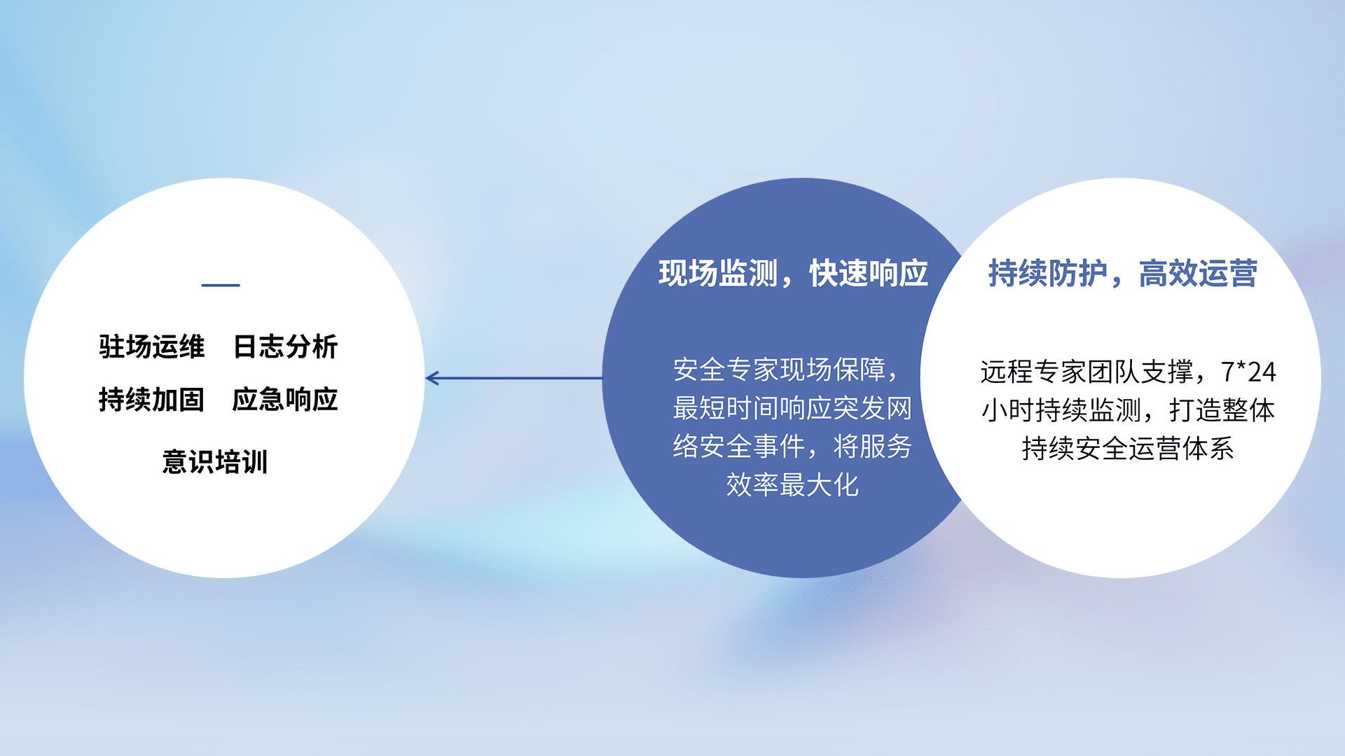 7X24小时持续监测安全事件,保持安全策略有效性,降低资产脆弱性风险,,,,精准拦截黑客攻击,,减少被黑客利用的机会,,,第一时间遏制,,,降低损失。。